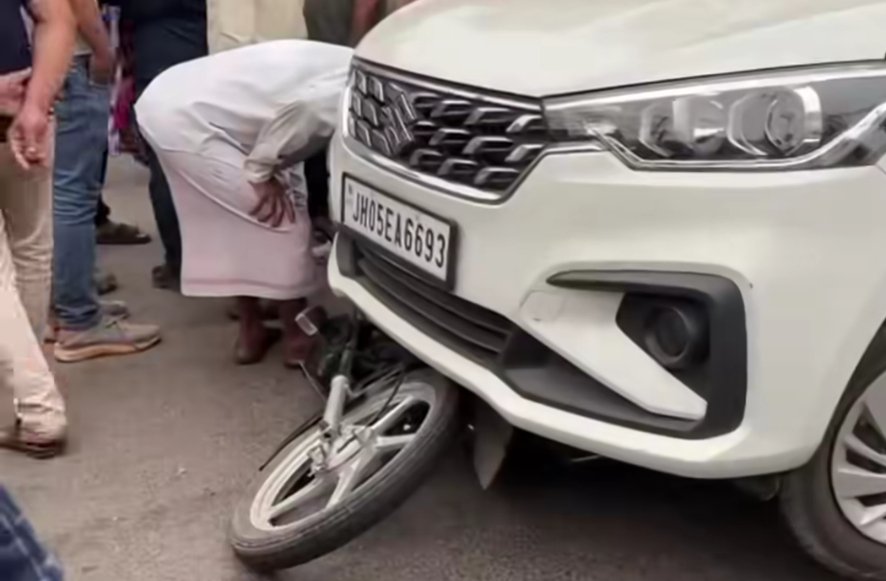 जमशेदपुर के आज़ादनगर थाना क्षेत्र अंतर्गत जवाहर नगर रोड नंबर 15 स्थित नेचर पार्क के सामने शुक्रवार सुबह एक दर्दनाक सड़क हादसा हो गया। जानकारी के अनुसार पारडीह की ओर से आ रही एक कार, जिसे चालक सीख रहा था, अचानक अनियंत्रित हो गई और सड़क पर जा रही स्प्लेंडर बाइक पर चढ़ गई। बताया जा रहा है कि बाइक सवार अपनी बेटी को स्कूल छोड़ने जा रहा था, तभी यह हादसा हुआ। टक्कर इतनी अचानक थी कि मौके पर अफरा-तफरी मच गई। हालांकि गनीमत रही कि बच्ची सुरक्षित बच गई, जबकि बाइक सवार घायल हो गया। घटना के बाद स्थानीय लोगों ने तुरंत राहत कार्य शुरू किया और कार के नीचे फंसी बाइक को बाहर निकालते हुए घायल व्यक्ति को तत्काल एमजीएम अस्पताल पहुंचाया। इधर, सूचना मिलते ही पुलिस मौके पर पहुंची और कार चालक को हिरासत में ले लिया। फिलहाल पुलिस पूरे मामले की जांच कर रही है और दुर्घटना के कारणों का पता लगाने में जुटी हुई है।
