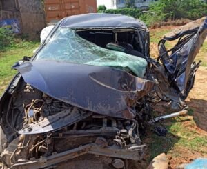 टक्कर इतनी जोरदार थी कि कार का अगला हिस्सा पूरी तरह क्षतिग्रस्त हो गया।