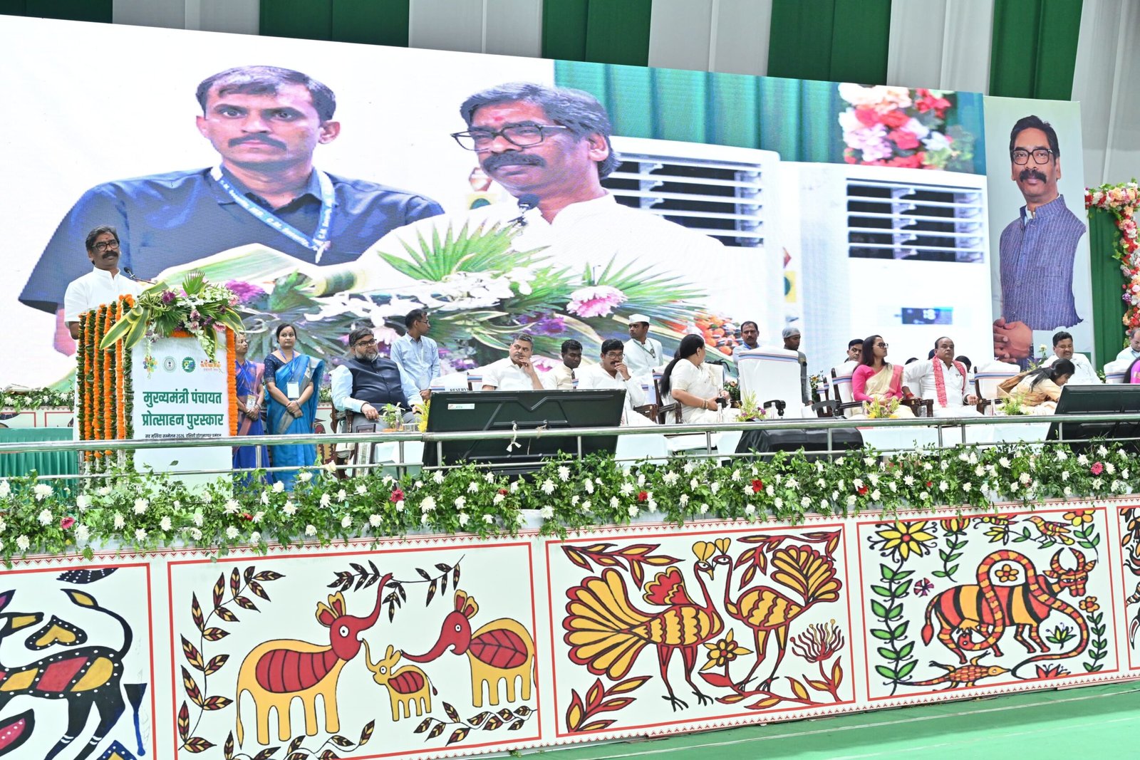आज 24 अप्रैल, शुक्रवार को रांची में आयोजित ‘मुख्यमंत्री पंचायत प्रोत्साहन पुरस्कार समारोह- सह- मुखिया सम्मेलन में मुख्यमंत्री हेमंत सोरेन ने कहा कि राज्य के समग्र विकास एवं ग्रामीण सशक्तिकरण की दिशा में जनप्रतिनिधियों की भूमिका महत्वपूर्ण है, आप सभी ऐसे लोग हैं जो ग्रामीणों के सबसे करीब रहते हैं। आप सभी लोग ग्राम-पंचायत व्यवस्था का अभिन्न अंग हैं। आपकी कार्य कुशलता से ही राज्य का सर्वांगीण विकास का रास्ता तय किया जा सकता है। मुख्यमंत्री ने कहा कि राज्य का विकास तभी होगा जब गांव का विकास होगा। गांव राज्य के जड़ हैं, जब जड़ मजबूत होगी तभी पेड़ मजबूत होगा। गांव को मजबूत करने की दिशा में हमारी सरकार निरंतर सकारात्मक कार्य कर रही है। उन्होंने कहा कि हमारी सरकार राजधानी रांची या हेडक्वार्टर से नहीं बल्कि गांवों से चलने वाली सरकार है, क्योंकि विकास की असली नींव गांवों में ही निहित है। भारत की लोकतांत्रिक व्यवस्था की मजबूती गांवों से शुरू होती है। गांवों को सशक्त किए बिना राज्य और देश के विकास की कल्पना अधूरी है। सरकार का लक्ष्य यह सुनिश्चित करना है कि योजनाओं का लाभ विकास की राह में खड़े समाज के अंतिम व्यक्ति तक पहुंचे। पहले जहां यह शिकायत मिलती थी कि सुदूरवर्ती क्षेत्रों तक न तो सरकार की आवाज़ पहुंचती थी और न योजनाएं, वहीं अब पंचायत स्तर पर कैंप लगाकर समस्याओं का समाधान किया जा रहा है और यह प्रक्रिया निरंतर जारी रहेगी। मालूम हो कि मुख्यमंत्री हेमन्त सोरेन आज हरिवंश टाना भगत इंडोर स्टेडियम, खेलगांव, रांची में आयोजित “मुख्यमंत्री पंचायत प्रोत्साहन पुरस्कार समारोह-सह-मुखिया सम्मेलन 2026 (दक्षिणी छोटानागपुर प्रमंडल)” को संबोधित कर रहे थे।