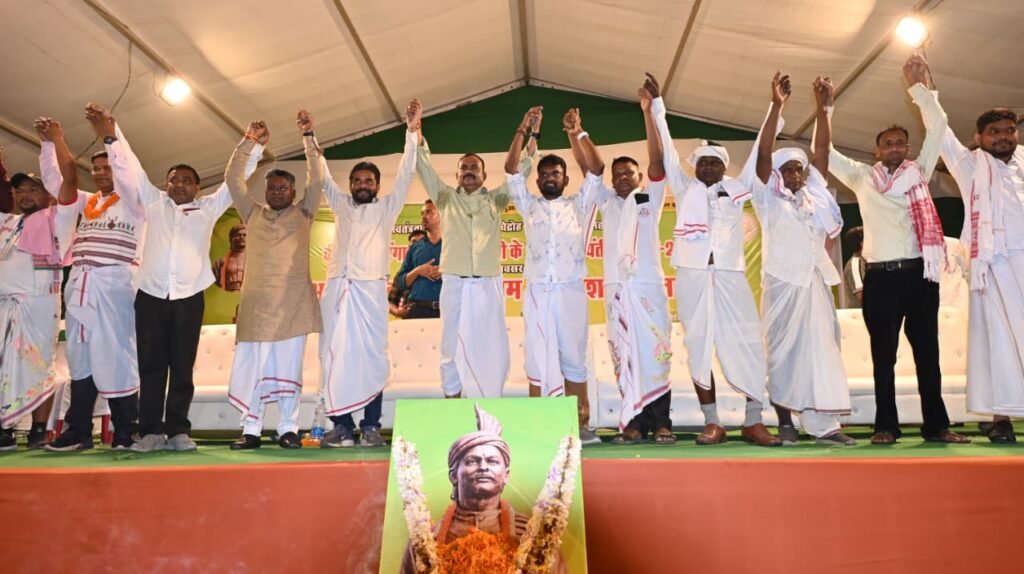 आज 25 अप्रैल, शनिवार को वीर शहीद गंगा नारायण सिंह की 236वीं जयंती के अवसर पर आयोजित भव्य समारोह में जनसैलाब उमड़ पड़ा। गोपाल मैदान में आयोजित इस ऐतिहासिक कार्यक्रम में करीब 55 हजार लोग शामिल हुए। झारखंड के साथ-साथ पश्चिम बंगाल, ओड़ीशा और असम से भी बड़ी संख्या में समाज के लोग पहुंचे, जिससे पूरा मैदान पारंपरिक वेशभूषा और सांस्कृतिक रंग में सराबोर नजर आया। कार्यक्रम के दौरान समाज की बालिकाओं एवं कलाकारों ने मांदर की थाप पर पारंपरिक नृत्य प्रस्तुत किया, जिसे देखकर उपस्थित लोग मंत्रमुग्ध हो गएश्र। विभिन्न सांस्कृतिक दलों की प्रस्तुतियों ने कार्यक्रम को और भव्य बना दिया। पूरे आयोजन में भूमिज समाज की समृद्ध संस्कृति, परंपरा और एकता की अद्भुत झलक देखने को मिली। समारोह में उपस्थित अतिथियों ने वीर शहीद गंगा नारायण सिंह के संघर्ष और बलिदान को याद करते हुए समाज को एकजुट रहने का संदेश दिया। इस अवसर पर समाज के कई बुद्धिजीवियों एवं विशिष्ट व्यक्तियों को सम्मानित किया गया। आयोजन समिति की ओर से सभी अतिथियों का पारंपरिक तरीके से स्वागत किया गया।